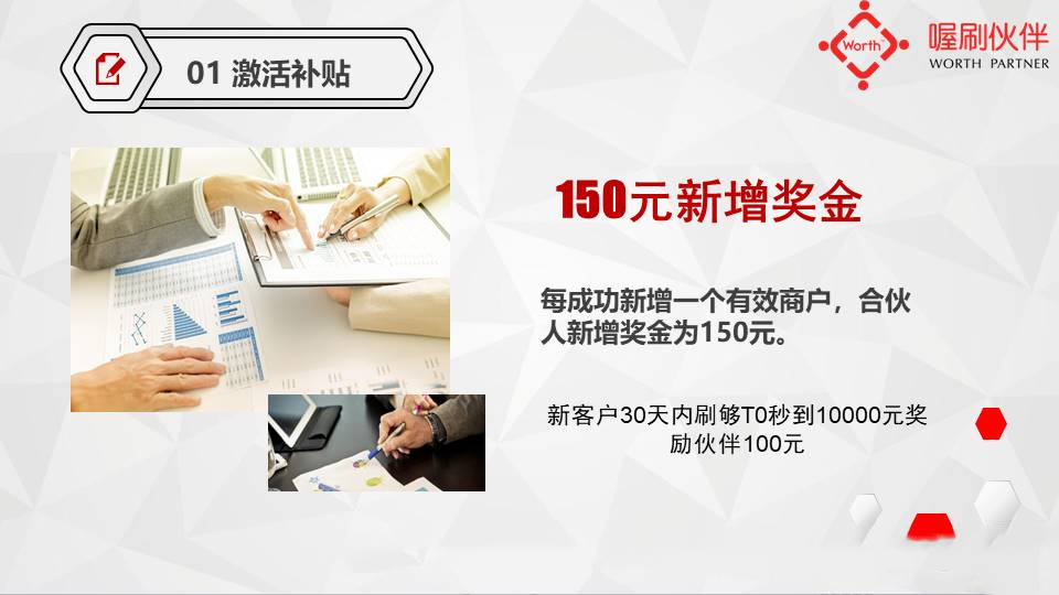 激活返现,刷卡分润,团队管理奖,钻石奖,皇冠奖,每一位伙伴都一样,同时兼得!